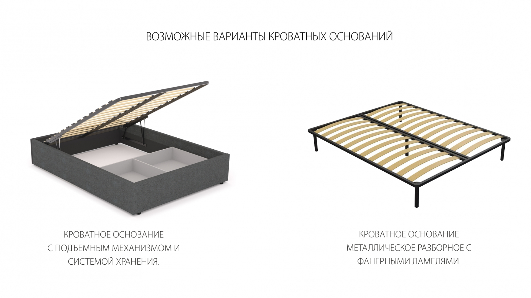 Кроватное основание с подъёмным механизмом и системой хранения.